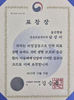 [울산소식]울산병원 남상서 응급의료센터장, 소방청장 표창 등