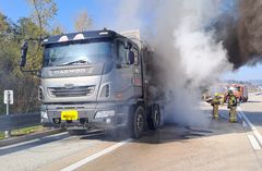 광주대구고속도 달리던 23t 트럭 불…브레이크 과열 추정