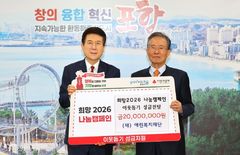 포항시는 22일 시청 대외협력실에서 '희망 2026 나눔 캠페인'의 하나로 애린복지재단이 이웃 돕기 성금 2000만원을 경북사회복지공동모금회에 맡겼다고 밝혔다. 전달식에 이대공 애린복지재단 이사장과 류준하 사무국장이 참석해 나눔의 뜻을 전달했다. 전달된 성금은 지역 취약 계층 지원을 위해 사용할 예정이다. 애린복지재단은 지난해 '희망 2