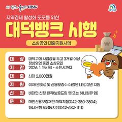 대전 대덕구, 소상공인 지원 대덕뱅크 시행