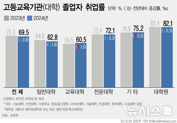대졸자 취업률 69.5%…고용한파에 4년 만에 감소 전환