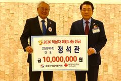 고도화학 정석관 대표는 대한적십자사 울산광역시지사에 2026년 적십자 희망나눔 성금 1000만원을 전달했다. 정석관 대표는 대한적십자사 울산광역시지사 부회장을 역임하고 있다. 대한적십자사 1억원 이상 고액기부자클럽인 RCHC 112호 회원으로 매년 기부를 실천하고 있다. 정 대표는 "혼자가 아닌 지역사회가 함께할 때 더 큰힘이 된다는 믿